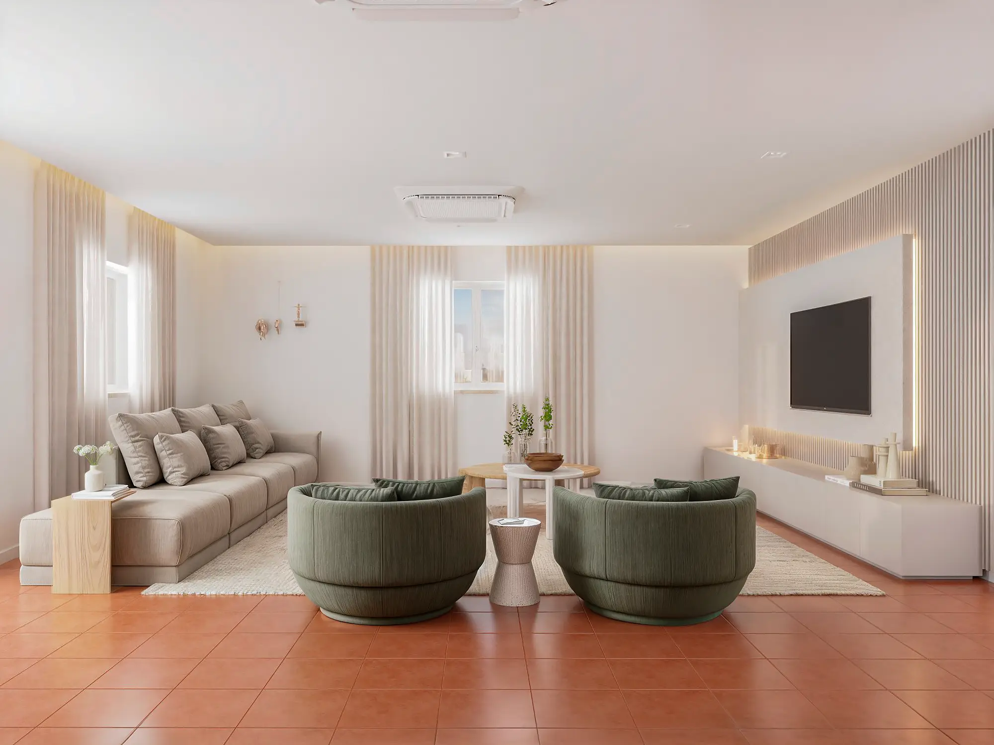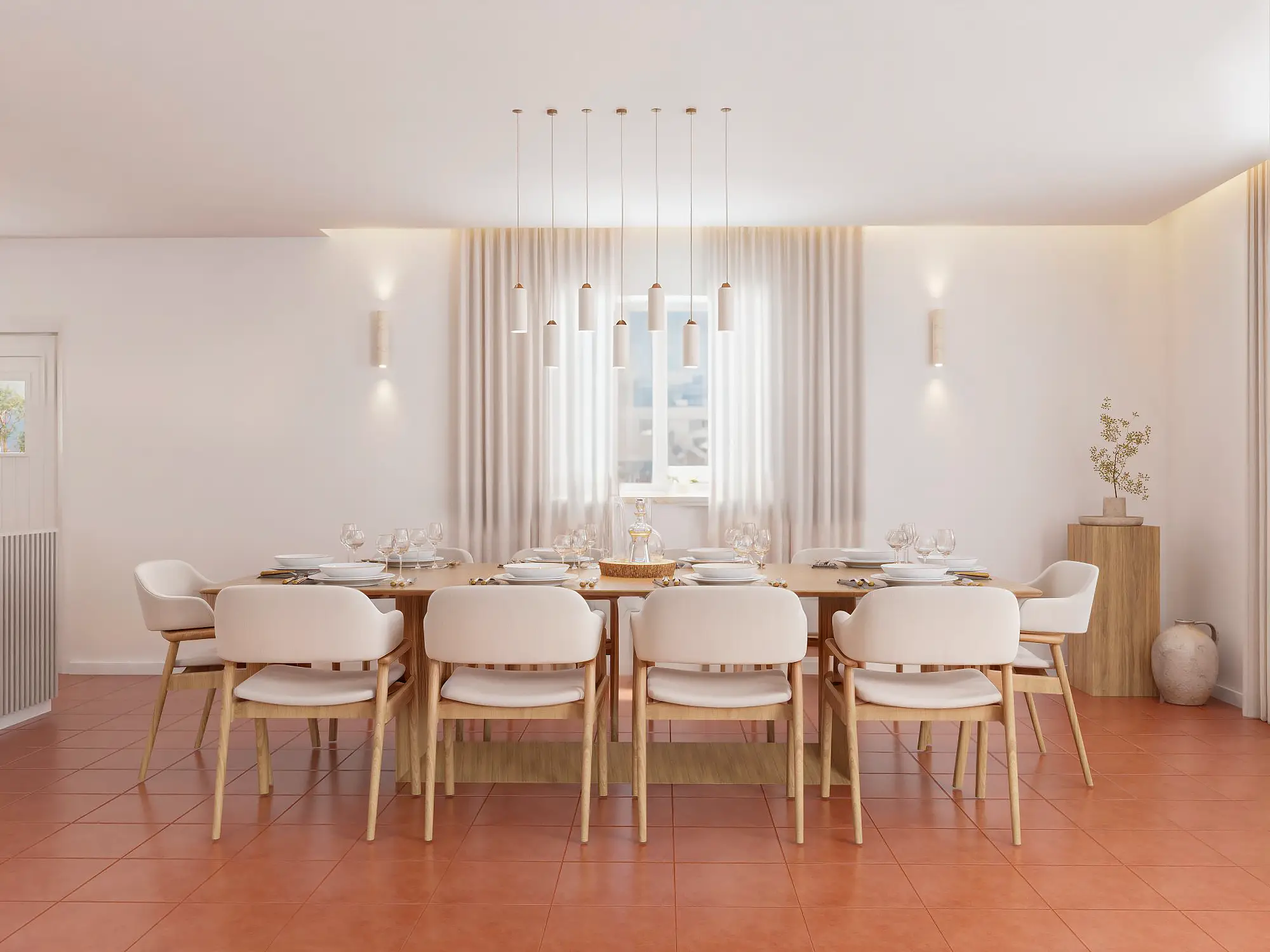 Nesta herdade em Arraiolos, desenvolvemos um projeto de interiores que respeita a identidade alentejana, mas a apresenta de forma contemporânea e sofisticada. O objetivo foi criar espaços de convívio amplos e luminosos, pensados para receber com conforto e celebrar a vida em família.