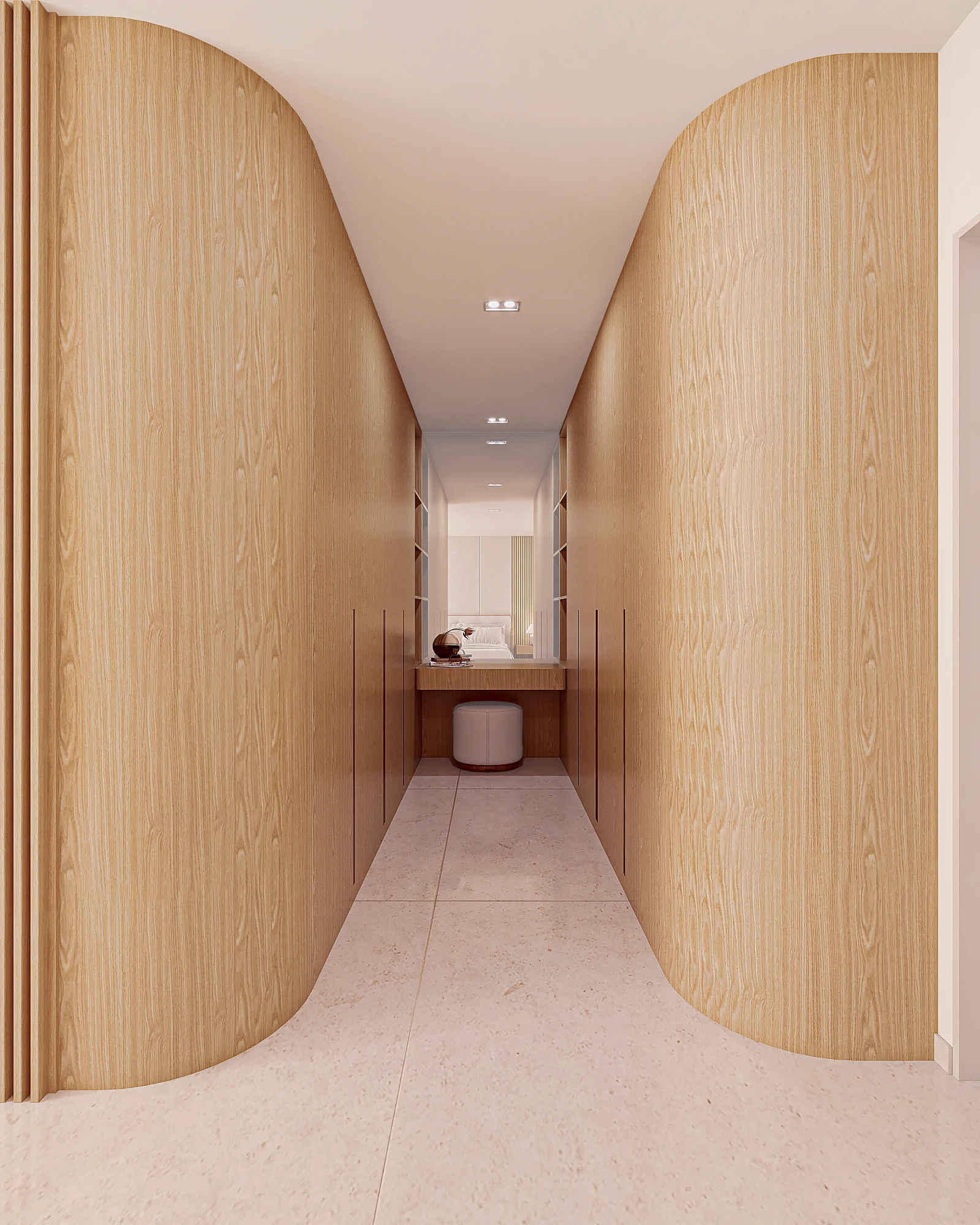 Na Suíte Porto, a ideia foi justamente resolver essas dores. Criamos um ambiente que mistura conforto com sofisticação, onde cada detalhe tem um propósito: das madeiras naturais que aquecem o espaço, à paleta neutra que transmite serenidade, tudo pensado para transformar a rotina em experiência.